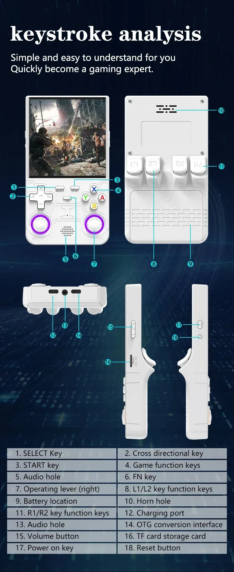 Product NameR36 Ultra Retro Handheld Game Console with 64GB - Transparent Blue
