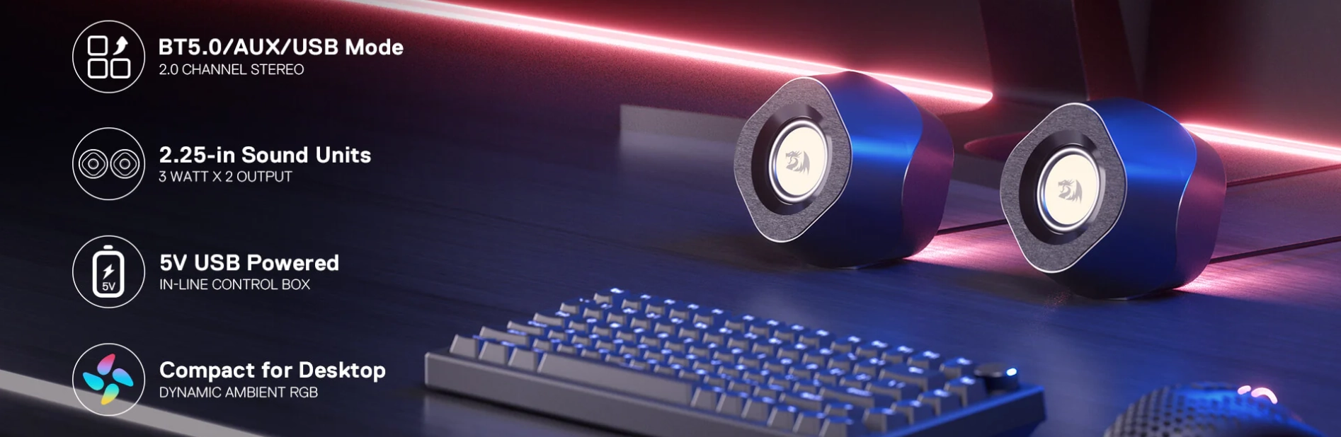 Brand: Redragon Model Name: Kaidas Speaker Type: Dynamic Speaker Connectivity Technology: Bluetooth Special Feature: Wireless, Rhythmical Sync Backlit