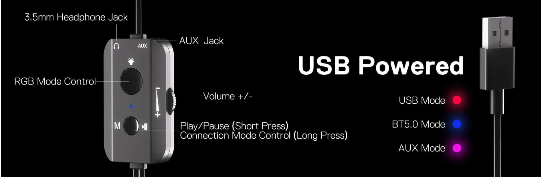 PLUG & PLAY FOR BROAD COMPATIBILITY USB-powered USB sound card and AUX wired mode offers stable audio transmission, which allows this rockstar to party on wide type of stages for PC, TV, Laptop, and other devices.