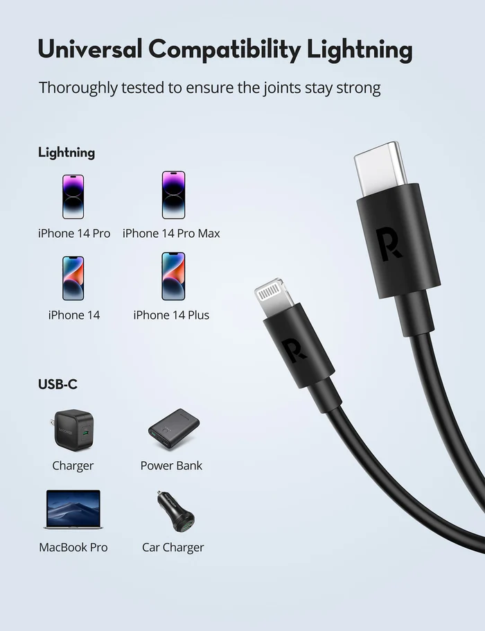 Product NameRavpower Rp-cb1034 Type C To Lightning Cable Black Tpe 3m