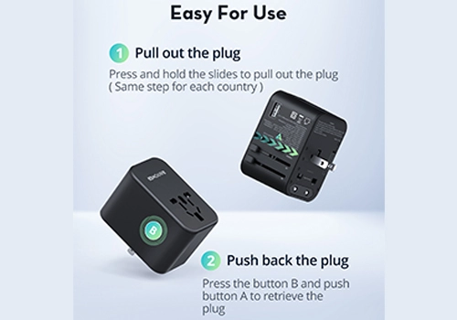 Easy for use It is extremely easy to use. Just press and hold the slides to pull out the plug. Press 'B' button and push 'A' button to retrieve the plug and you're ready to go.