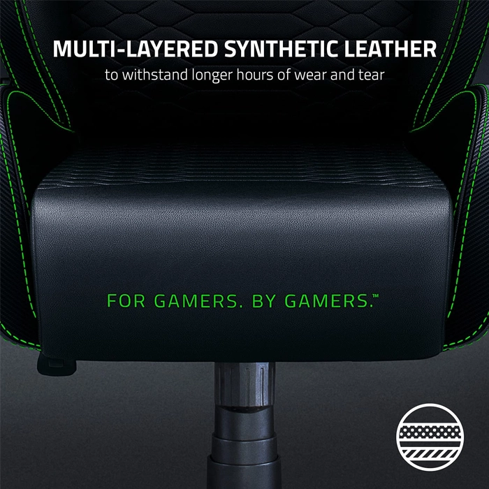 Razer Iskur X - XL Ergonomic Gaming Chair, Ergonomically Designed for Hardcore Gaming, Multi-layered Synthetic Leather, High Density Foam Cushions (Size - XL) - Black & Green