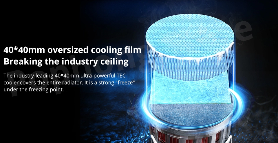 Use a new generation of TEC semiconductor secondary refrigeration technology, 40*40m㎡ large refrigeration sheet, seamless fit and rapid heat conduction, the temperature dropped by 30℃, up to 30 ℃ cooling, as low as -9 ℃.