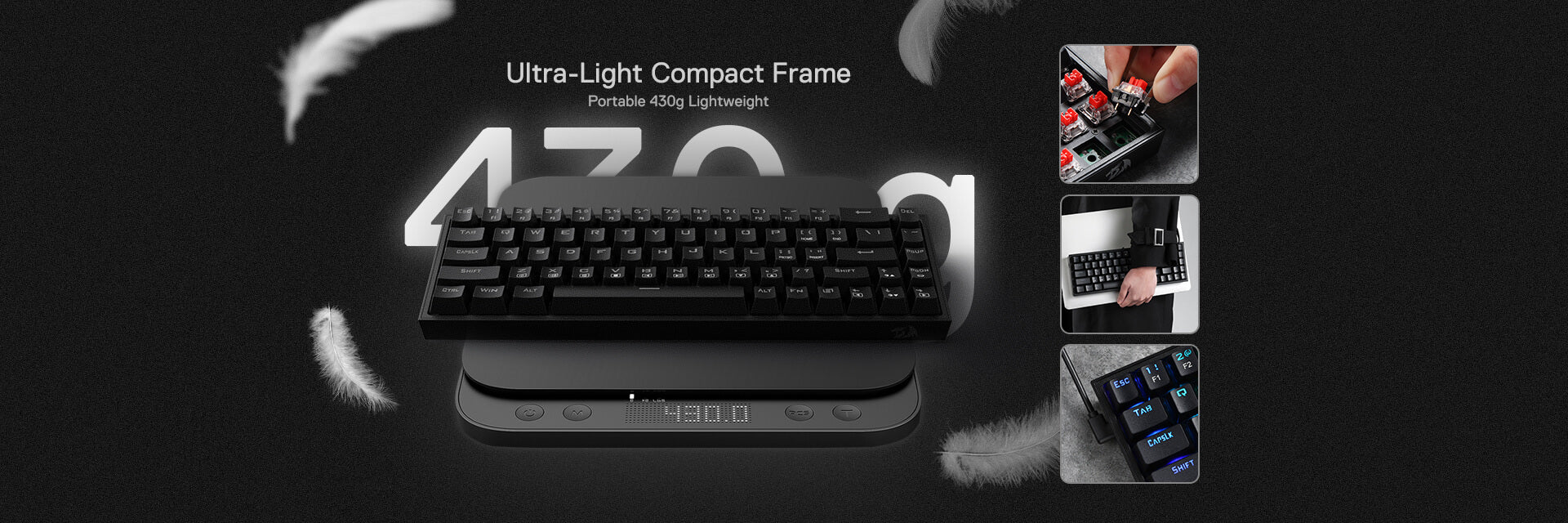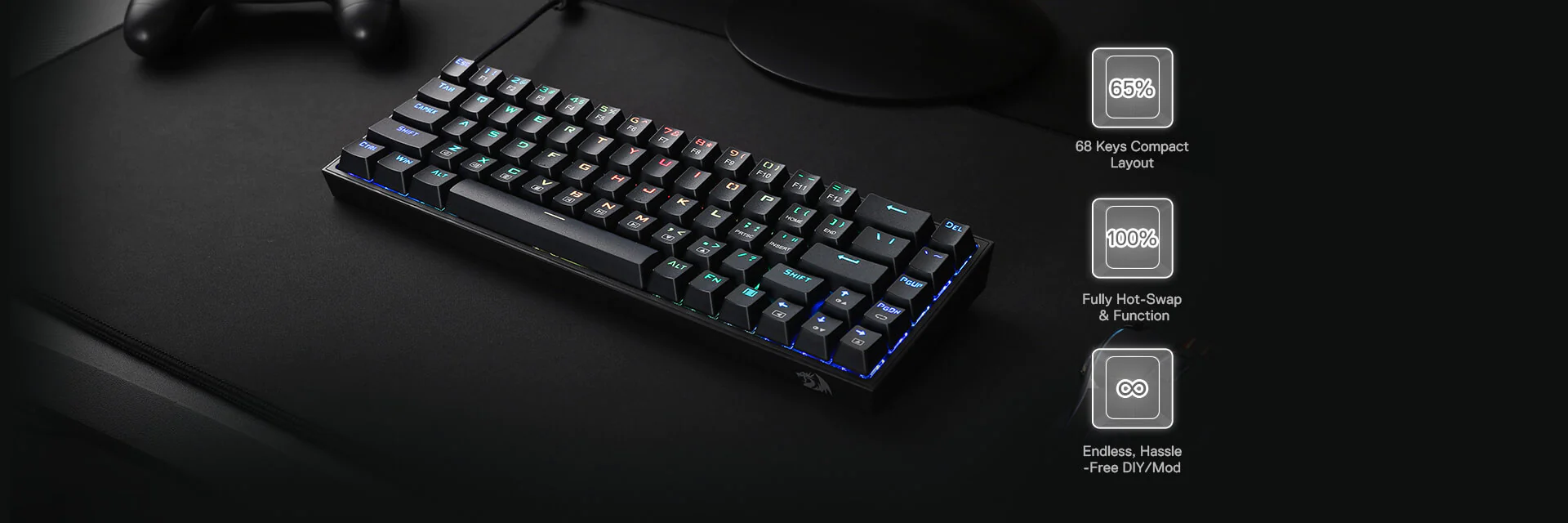 Wired 68 Keys Layout - Redragon 65% layout K631 in wired mode meets the user's need for separate arrow keys and extra function keys. 68 keys ultra-compact and lightweight slim design frees up precious desk space for less clutter.