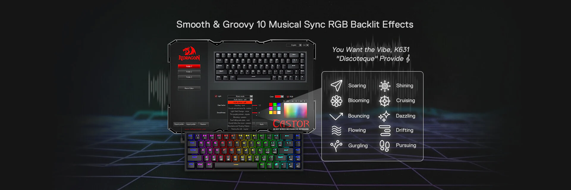 Vibrant Groovy RGB - Up to 20 presets backlighting modes are free to choose by the keyboard itself. Brightness and flowing speed is also adjustable on board. Select your own preferred modes for any playing.
