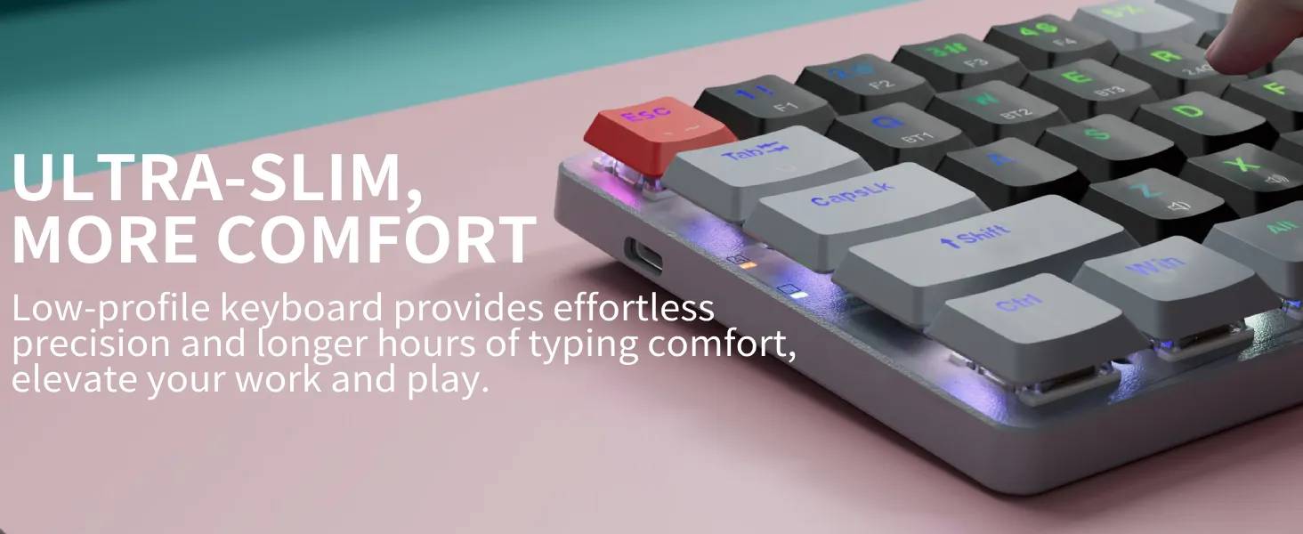 3 Connection Modes: 2.4G Wireless, detachable type-c wired and Bluetooth BT1/BT2/BT3.