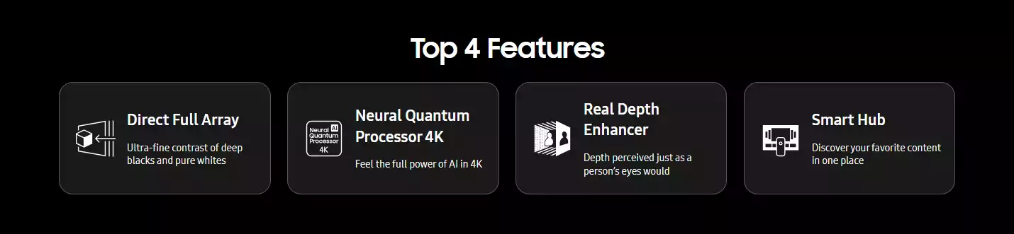 Neural Quantum Processor 4K Feel the full power of AI in 4K The powerful processor ensures you feel the full power of 4K with 4K AI Upscaling. It automatically improves scenes, regardless of the original content.