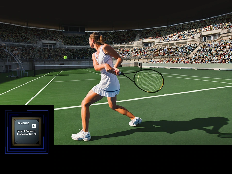 Powerful intelligence that completes 8K Neural Quantum Processor Lite 8K You can immerse in the full power of 8K with Samsung's powerful processor that creates the best viewing experience with its 8K AI Upscaling technology. The intelligent processor optimizes each scene to greatly enhance your viewing condition.