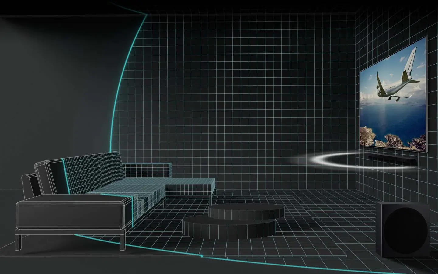 SpaceFit Sound offers clear and immersive sound by optimizing your audio to match your space. The soundbar can even automatically analyze the room on its own, calibrating the sound field to perfectly fit your room.