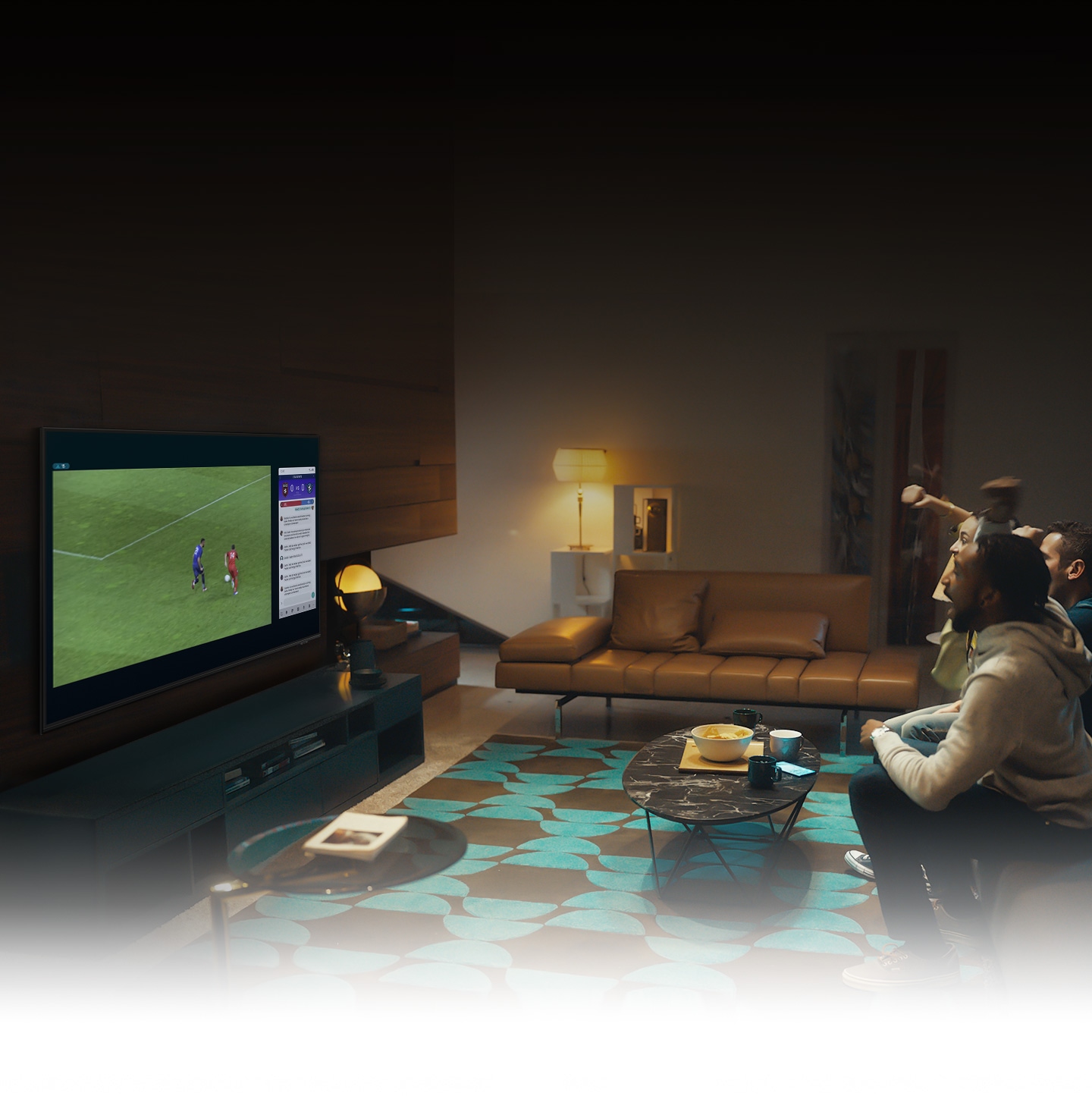 Surround yourself with sound from TV and soundbar orchestrated in harmony. Q-Symphony uniquely allows TV and soundbar speakers to operate simultaneously for better surround effect without muting TV speakers.
