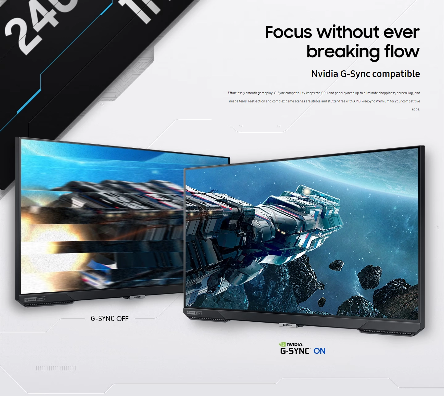 G-Sync compatible monitor has a 240Hz refresh rate and 1ms response time