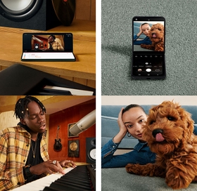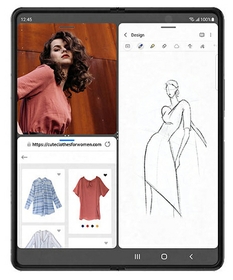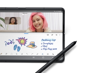The first S Pen on a foldable. Feels write. Get precision your fingers could only dream of as you put pen to glass. And you can watch, video call and more, hands-free with Flex Mode. It splits the screen in two, letting you work smarter — like taking a call on the top half and sketching ideas on the lower half.