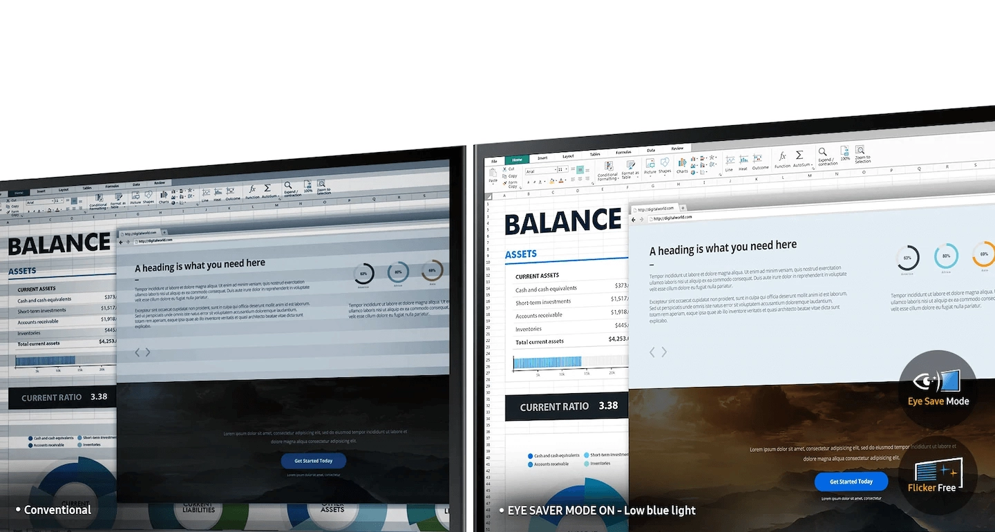• Flicker Free: Samsung’s Flicker Free technology minimises distracting screen flicker to let you work and play for longer in greater comfort