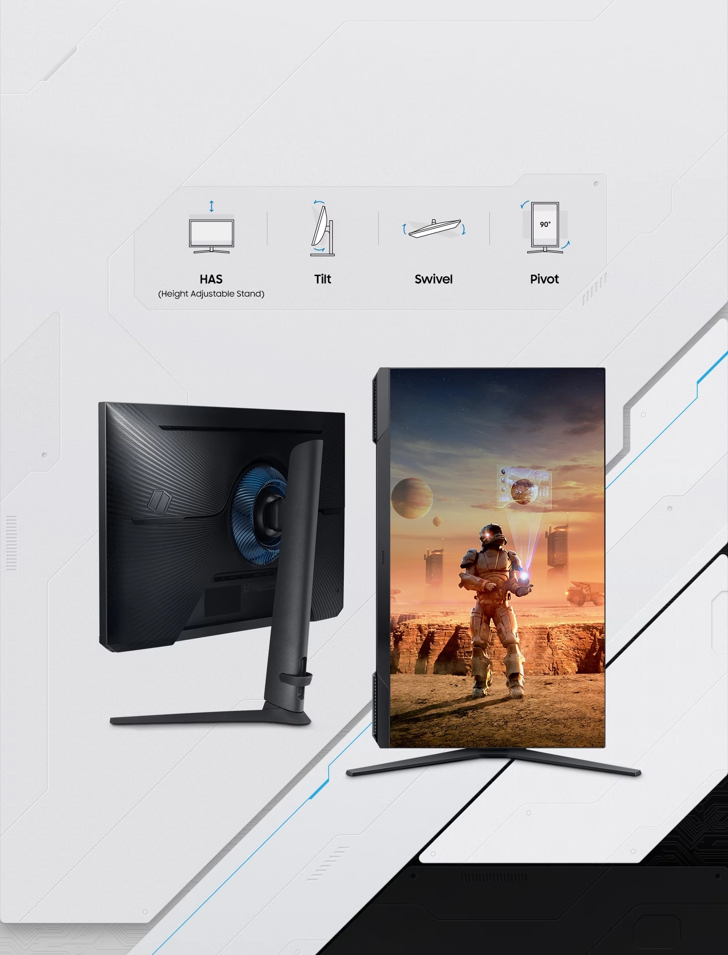 Design Color: BLACK Stand Type: HAS HAS (Height Adjustable Stand, mm): 120.0 ± 5.0 Tilt: -5.0°(±2.0°) ~ 20.0°(±2.0°) Swivel: -15.0°(±2.0°) ~ 15.0°(±2.0°) Pivot: -2.0°(±2.0°) ~ 92.0°(±2.0°) Wall Mount: 100.0 x 100.0