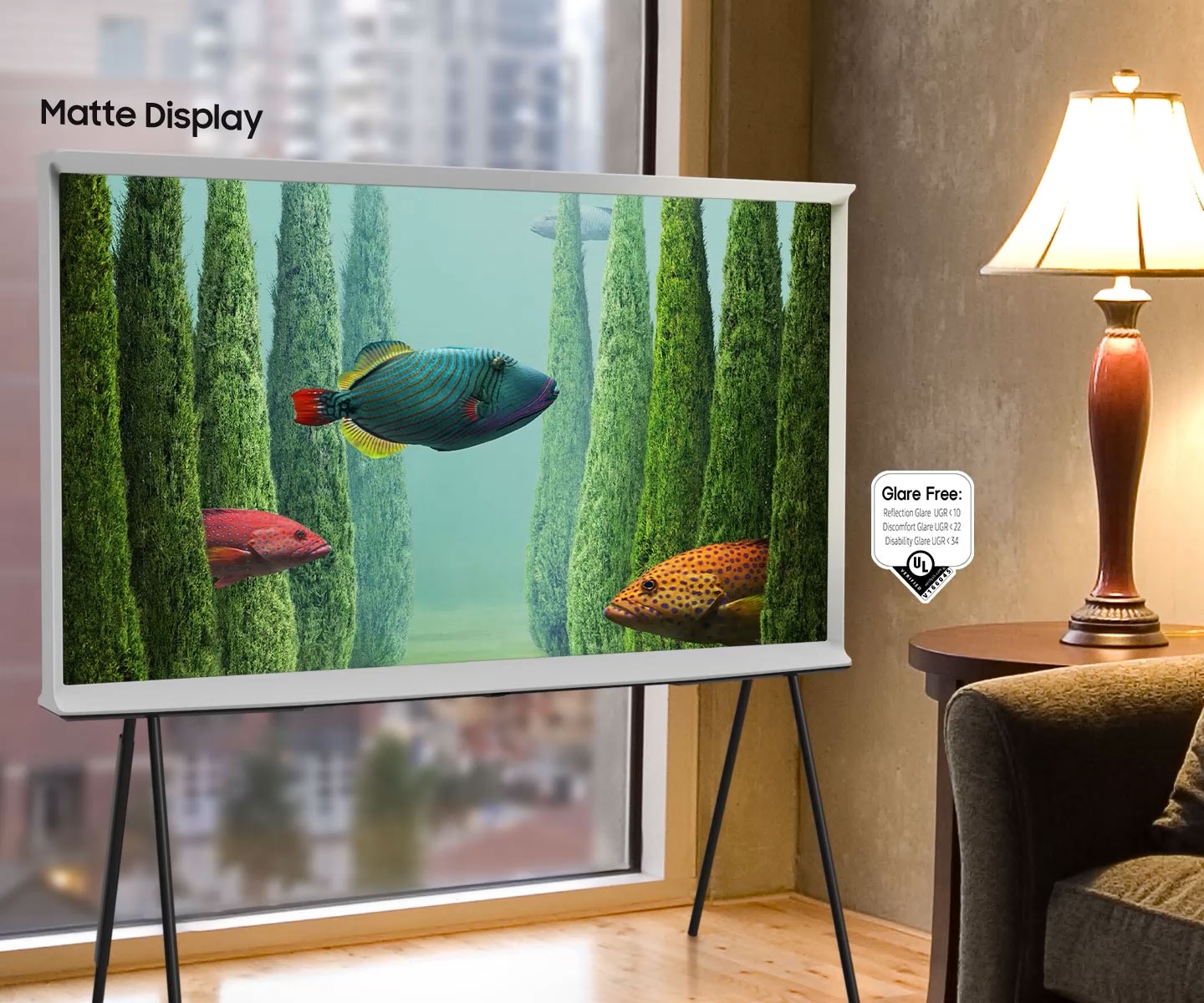 The Matte Display drastically reduces light reflections on The Serif so you can fully enjoy what you're watching.