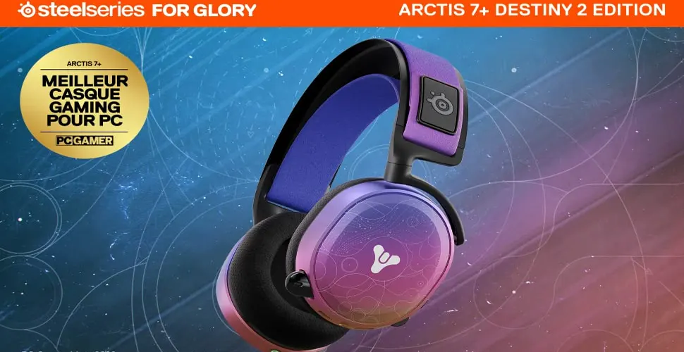 The Arctis 7+ Destiny 2: Lightfall Edition includes the exclusive Viral Celebration emote and the Luminescent Precision emblem, designed specifically for this collaboration.