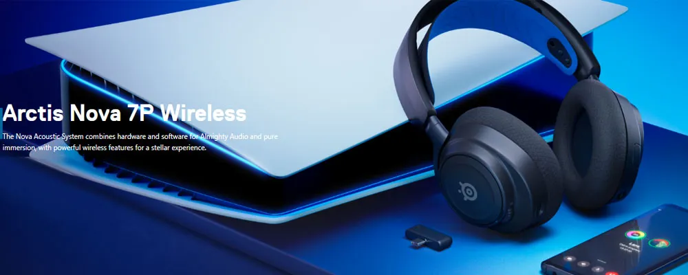 SteelSeries Arctis Nova 7P WIRELESS Gaming Headset for PC, Playstation & Xbox With USB-C dongle - Black