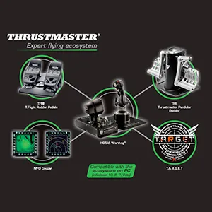 These products are part of a range of flight simulation peripherals that can be used in conjunction with one another: a complete ecosystem featuring the HotasWarthog, TFRP rudder pedals* and MFD* (Multi-Functional Display) cockpit panels. These elements are also compatible with the T.A.R.G.E.T advanced programming software**.