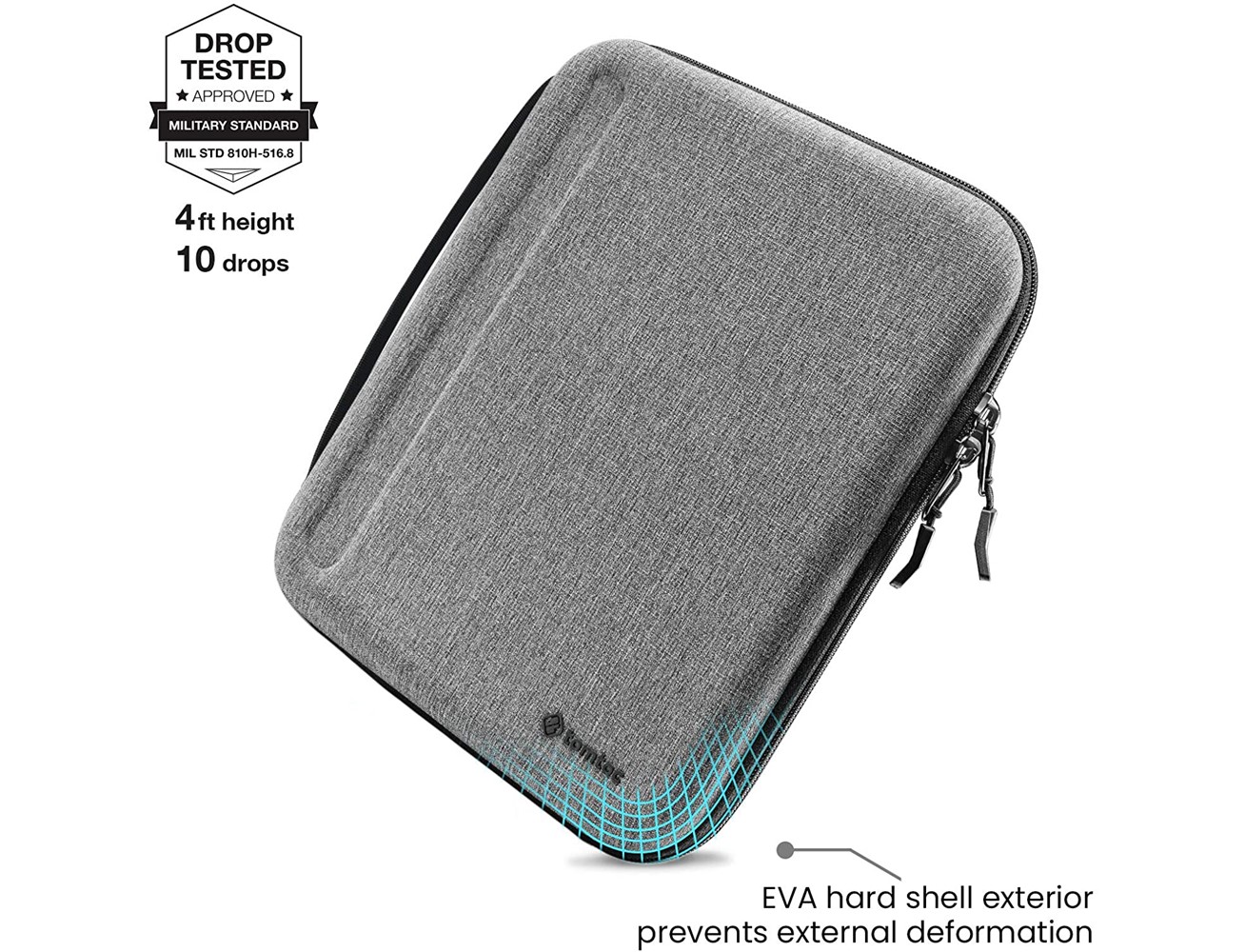 Tomtoc Hard-shell Case Has Passed The STD-810H Military Standard Drop Test, EVA Shell Has Been Tested To Ensure Your New iPad Was Preventing From Bending Even Drops From 4 Feet.