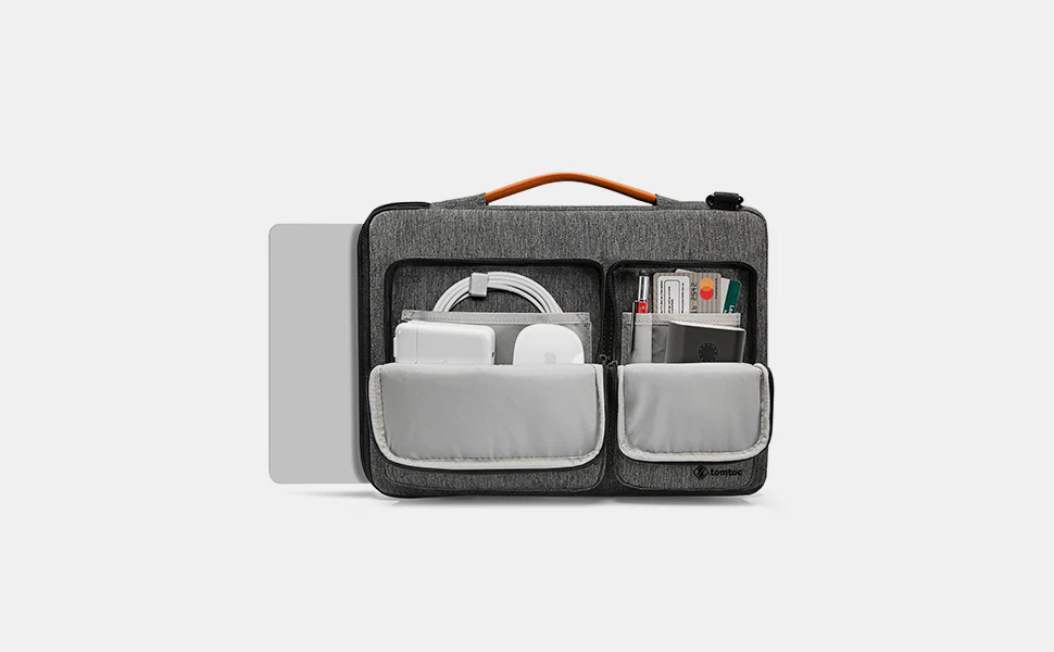 tomtoc's laptop shoulder bag features two front large zipper compartments for additional storage. With penholders, small card pocket, the bag makes it easier than ever to organize your digital accessories.