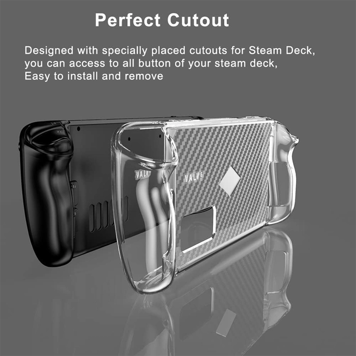 This Protective Case is specifically designed for Steam Deck, Soft and fully transparent design. The cover for Steam Deck is made of Soft & Durable TPU material, will protect your steam deck from daily bumps, scratches, falls, etc. Designed with specially placed cutouts for Steam Deck, you can access to all button of your steam deck. There are air vents on the back and top of the case, it allows you to play with Steam Deck for an extended amount of time in your favorite games, no need to worry about overheating. The soft and flexible material made the steam deck cover easy to put and remove.
