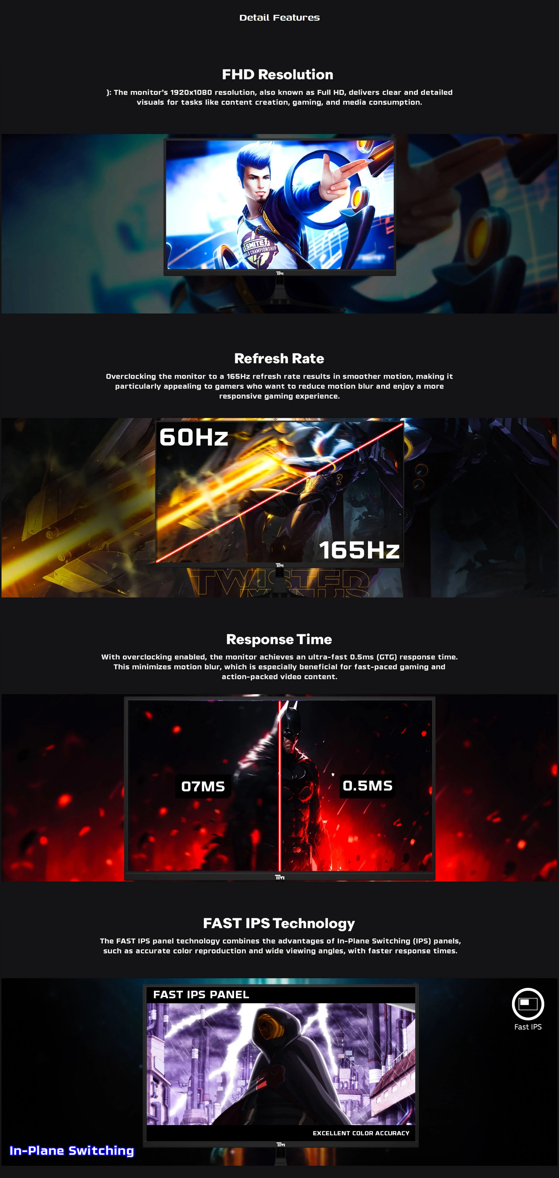Panel Type: FAST IPS technology ensures fast response times and vibrant colors.