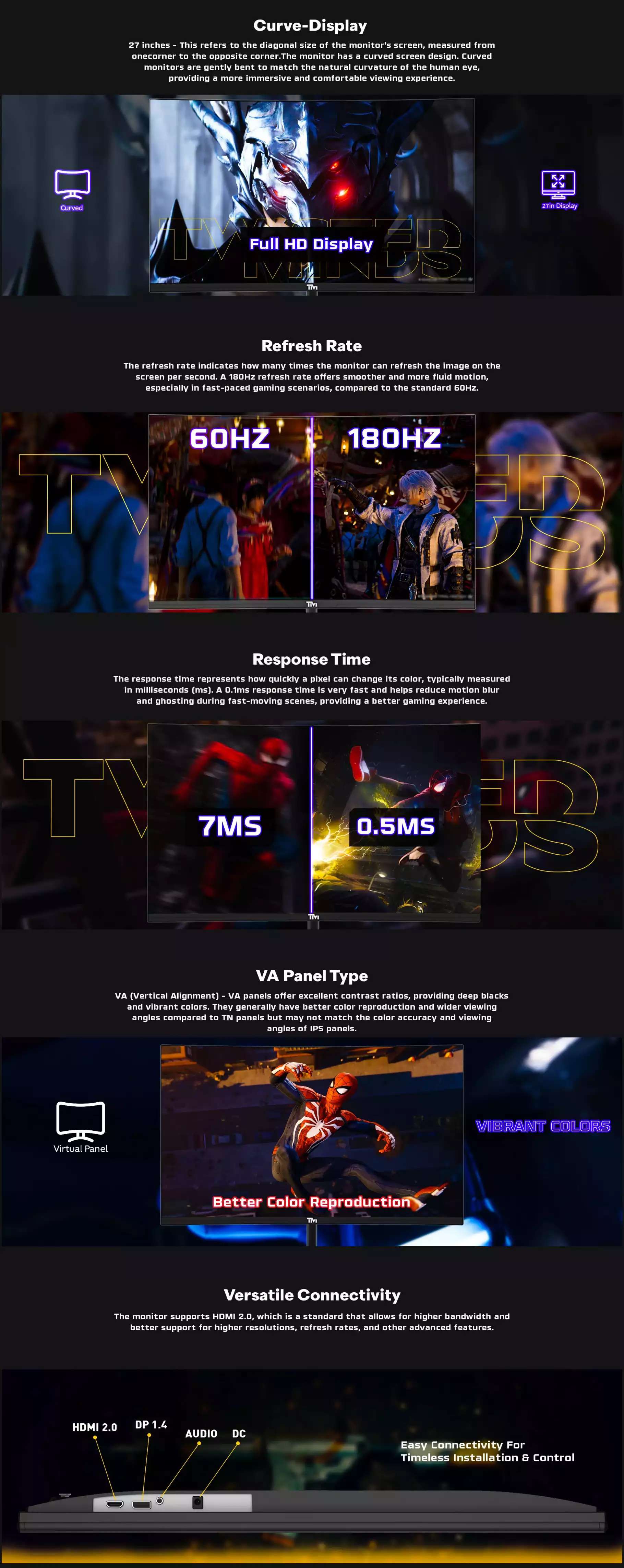 Product NameTwisted Minds 27'‘ Fhd Va, 180hz, 0.5ms, Hdmi2.0, Hdr Curved Gaming Monitor - Black