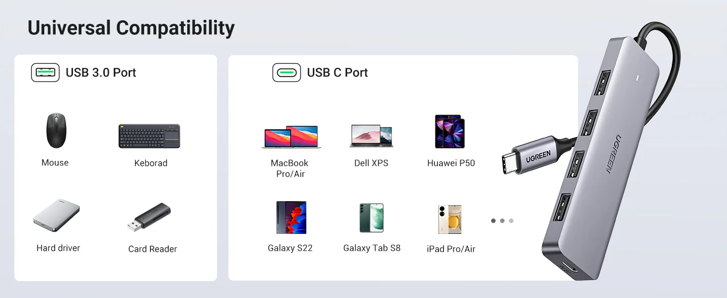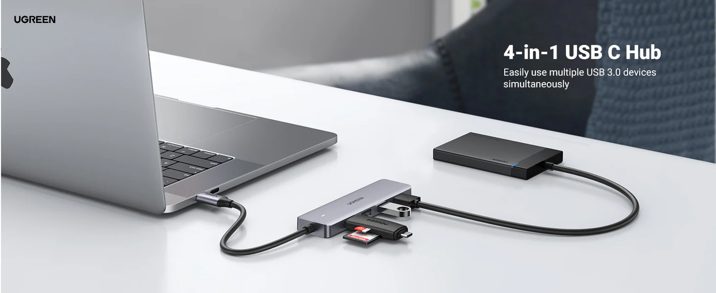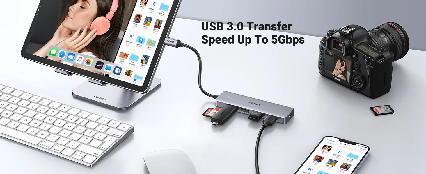 USB C data hub 4 Ports supports super faster data transfer up to 5Gbps - 10X faster than USB 2.0 (480 Mbps), which allows you to transfer HD movies or large files in just seconds.