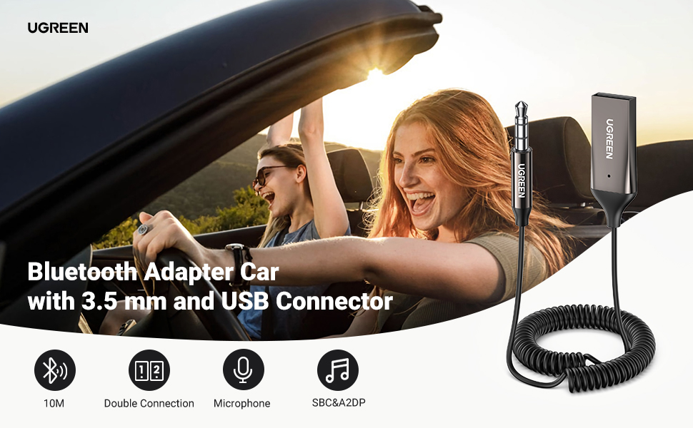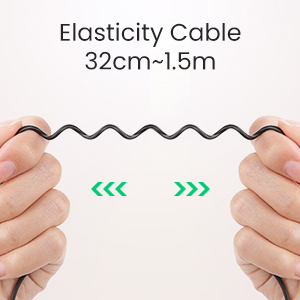 The spiral aux cable of UGREEN Car Bluetooth Adapter is made of elastic PVC material and is rolled up to a length of only 32 cm. Compact and portable cable saves space on the center console and is definitely super practical for the driver.
