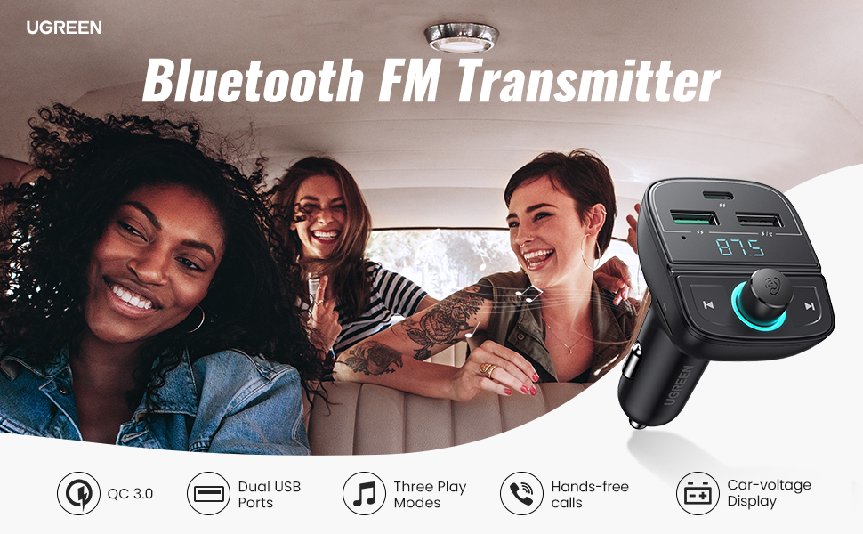 UGREEN Bluetooth phone adapter for cars adopts the latest V5.0 patent, which can record your FM frequency and compatible devices automatically, pairing 2X faster than the other Bluetooth FM transmitter and keeping a stable connection for streaming music via FM Frequency even sitting on the backseat.