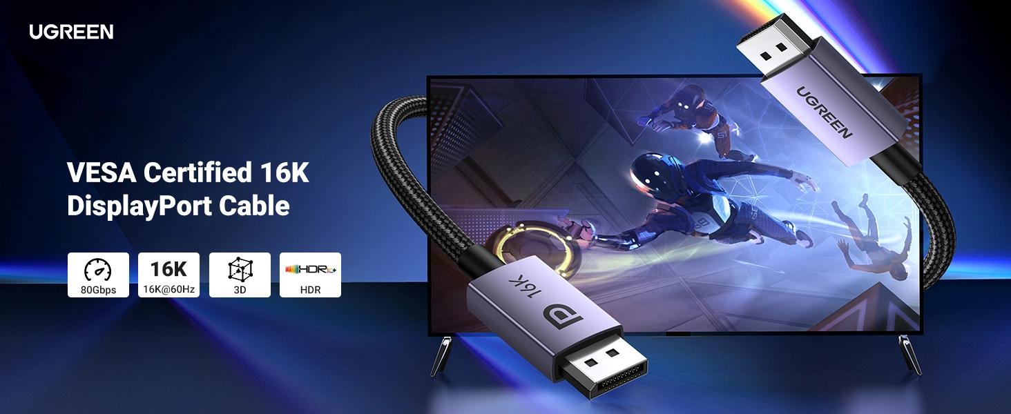 VESA Certified: DisplayPort 2.1 Cable supports transmission speed up to 80Gbps Bandwidth, refresh rate up to 16K@60Hz, 10K60Hz, 8K@60Hz, 4K@144Hz, 2K@240Hz. UGREEN 16K DP Cable supports Dynamic HDR and HDCP 2.2. Backward compatible with DisplayPort 1.4/1.2.