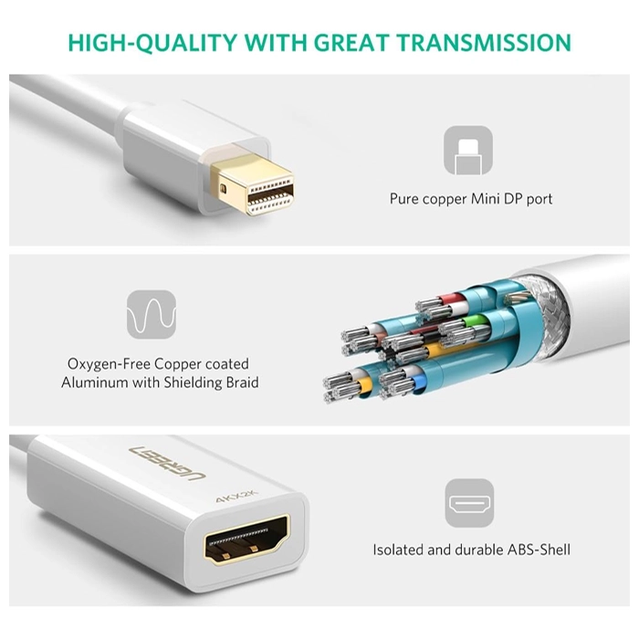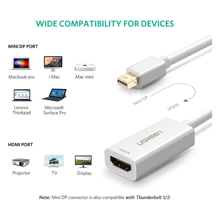 Ugreen 4K Mini DisplayPort - HDMI Converter Adapter You can connect laptops, computers to monitors, displays, HDTVs or projectors with HDMI port, which are ideal for games, home theater and presentation. Supports high resolution up to 3840 x 2160 at a refresh rate of 30 Hz with 4K support. The videos are brighter, sharper and offer you better viewing possibilities