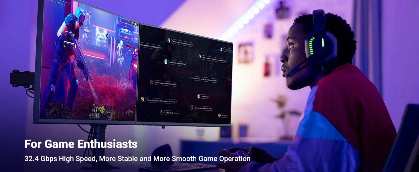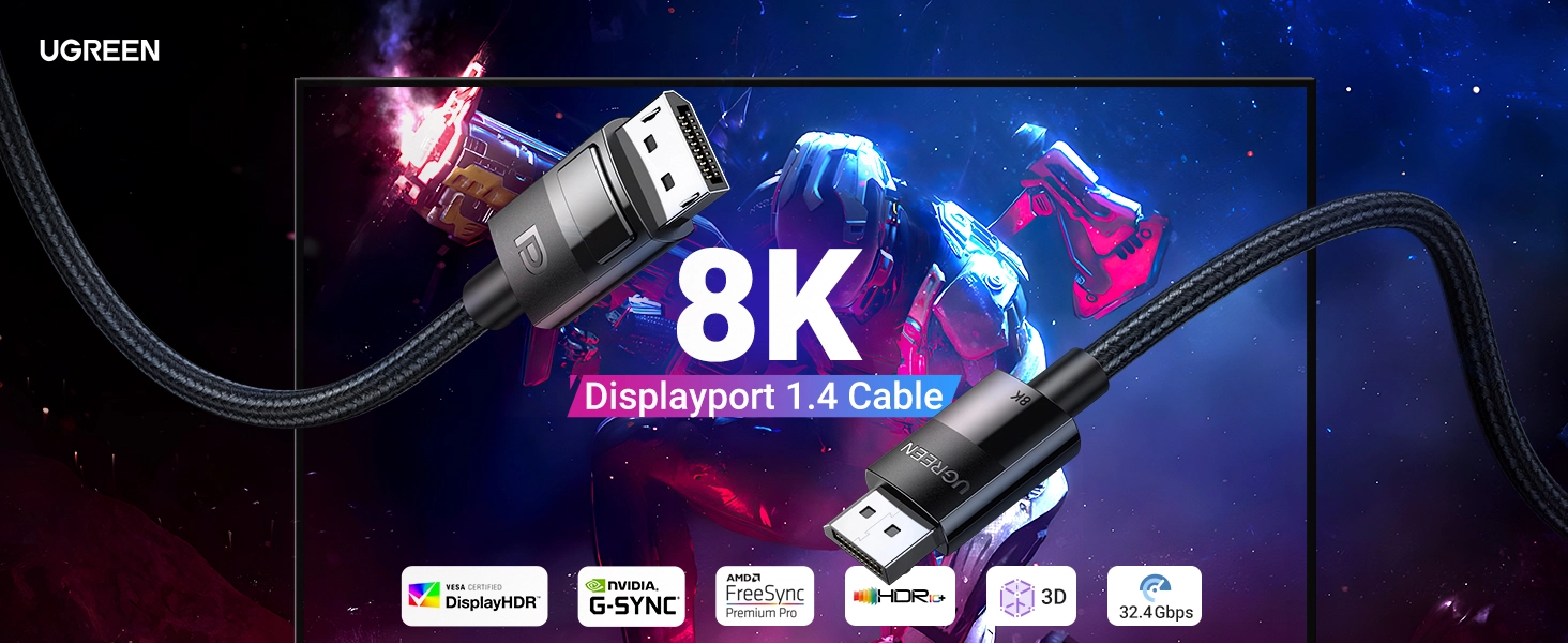 UGREEN DisplayPort cable not only can support 3D video but also can support the resolution up to 8K 7680x4320@60Hz, 4K 3840x2160@144Hz and 2K@165Hz, ideal for doing high-performance gaming or watching an HD movie on your television. It is the optimal choice for large games, home theaters and splicing-screen display advertising.