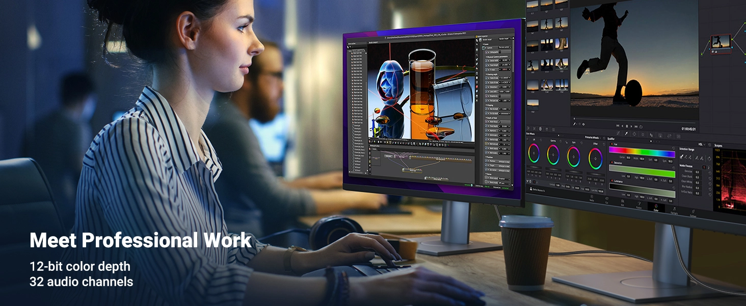 DisplayPort 1.4 can transmit up to 32.4Gbs bandwidth, which allows a higher resolution of 8K at 60Hz with 10-bit color HDR or 4K at 144Hz to be viewed. Coming with VESA’s DSC version 1.2 technology enables up to 3:1 compression ratio to be visually lossless. Its Multi-Stream Transport (MST) capability enables high-resolution support of multiple monitors on a single display interface.