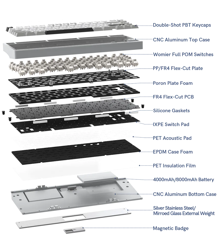 Meet the Womier RD75, a 75% layout QMK wireless aluminum custom keyboard designed for seamless rapid disassembly. Equipped with a tool-free Ball-Catch structure and magnetic PCB connector, it ensures an effortless experience every time. This QMK custom mechanical keyboard doesn’t require a beginner's guide. Everything you need is built right in, from easy setup to customization, making it the perfect QMK wireless custom keyboard for every keyboard enthusiast and custom mechanical keyboard user.