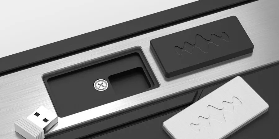 No need to worry about losing your dongle with the RD75! This QMK wireless mechanical keyboard is equipped with a hidden dongle storage slot, tucked under a decorative magnetic metal badge for added convenience and protection, ensuring a sleek, minimalist aesthetic, while keeping your dongle safely stored.