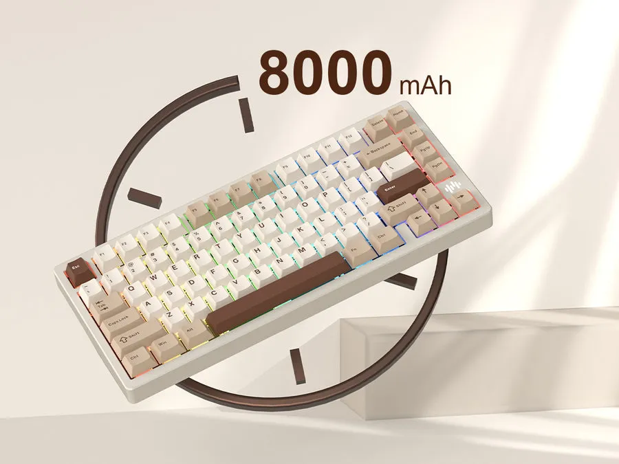 The RD75 Pro has 8000 mAh battery capacity, which can provide up to 900 hours* of use. Enjoy ultra-long battery life, fewer charging sessions, and greater support for multiple functions and higher performance, ensuring stability and longevity in your QMK wireless mechanical keyboard experience.