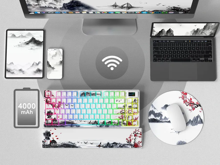 SK80 PRO comes in 1 new themes: Plum Blossom. Each theme is perfectly complemented by a matching wrist rest and mouse pad, creating a cohesive and stylish setup for your workspace.
