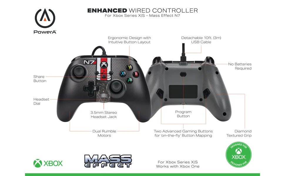 Xbox: PowerA Enhanced Wired Controller For Xbox –  Mass Effect N7