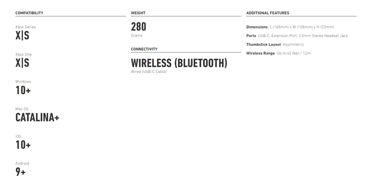 Interchangeable Thumbsticks with different shapes and sizes allow for the perfect fit.