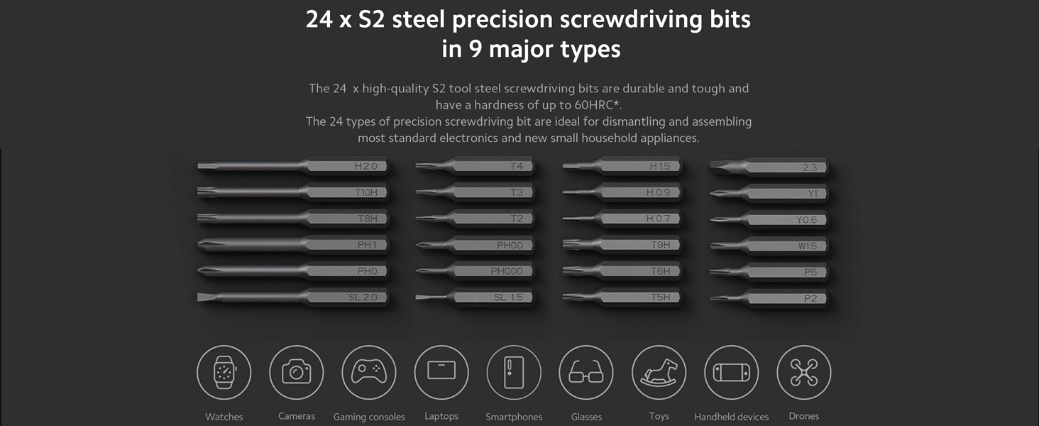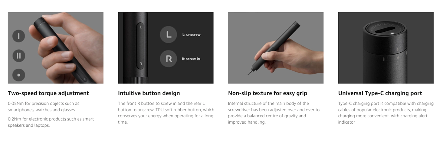 Push pop-up , magnetic StorageClassic award-winning design The Mi Precision Screwdriver has won five international design awards; namely the iF, Red Dot, Japan Good Design, IDEA and Chicago Good Design awards. The Xiaomi Electric Precision Screwdriver uses the same popup design, featuring a convenient, push-to-release mechanism.