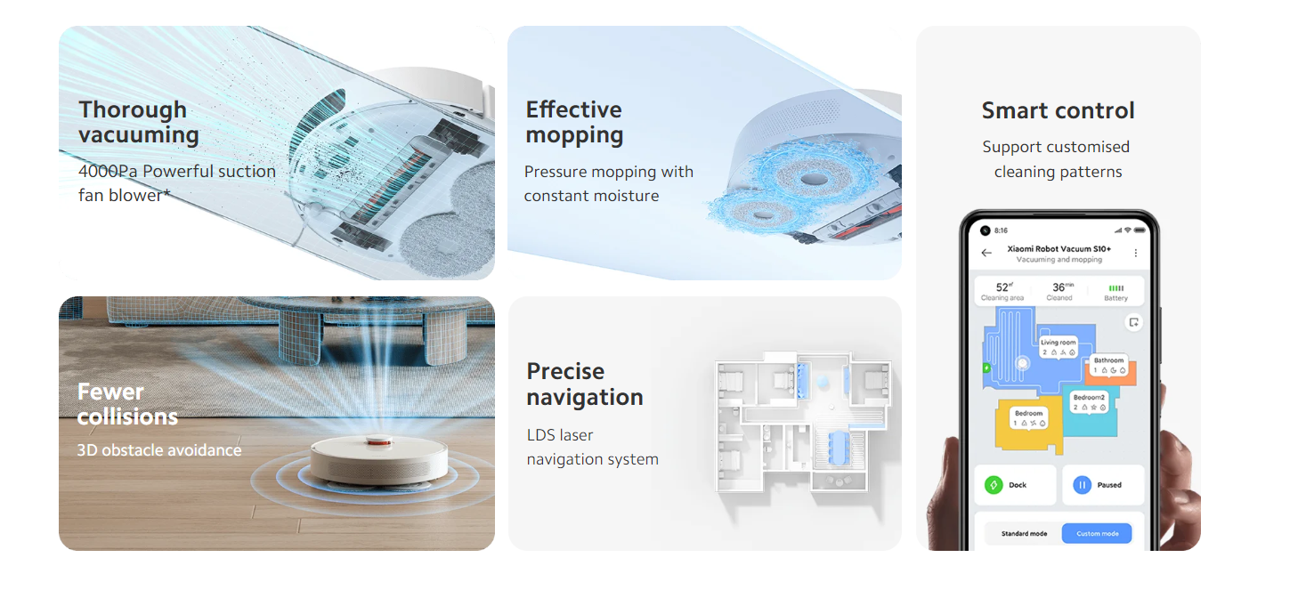 Xiaomi Robot Vacuum Cleaner S10 Plus - White best price from Alfuhod Shop online Xiaomi Robot Vacuum Cleaner S10 Plus - White and free same day delivery from Alfuhod in Kuwait.