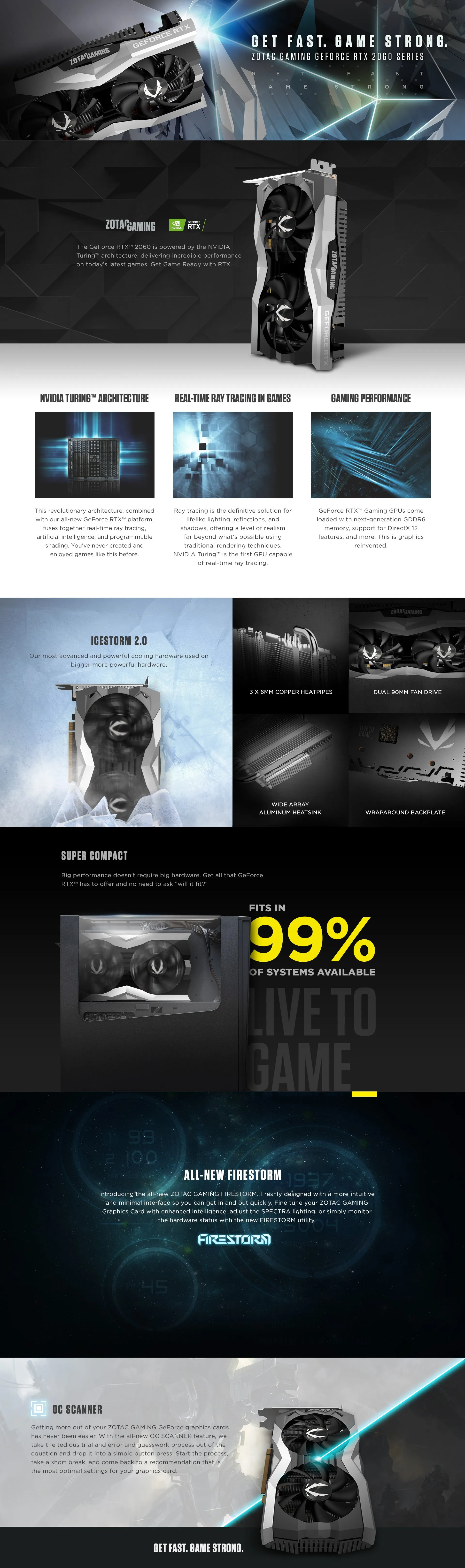 The all-new generation of ZOTAC GAMING GeForce graphics cards are here. The powerful new GeForce RTX™ 2060 takes advantage of the cutting-edge NVIDIA Turing™ architecture to immerse you in incredible realism and performance in the latest games. The future of gaming starts here.